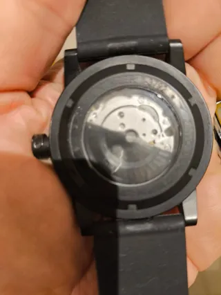 Elegante orologio Locman con cassa in acciaio e cinturino in gomma. - Cassa in acciaio. - Cinturino in gomma nero. - Quadrante nero con dettagli silver.