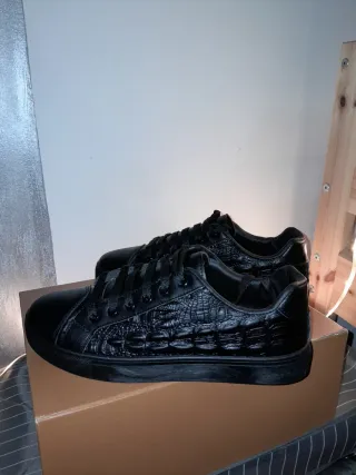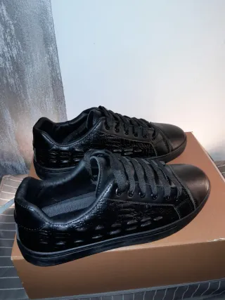 Sneakers Pelle Nera Effetto Coccodrillo