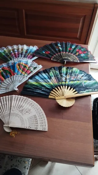 Bellissimo ventaglio con decorazioni floreali e paesaggistiche. - Design pieghevole. - Struttura in legno. Sconto se presi in blocco €2 cadauno