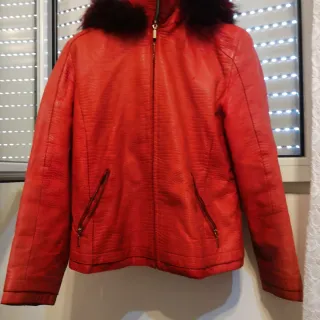 Giacca bomber in pelle rossa con cappuccio