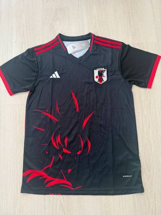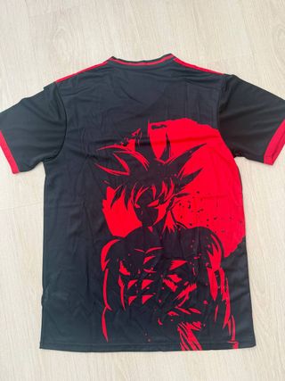Maglia da calcio del Giappone con un design ispirato a Goku di Dragon Ball. - Colore nero con dettagli rossi. - Logo Adidas e stemma del Giappone sul petto. - Tecnologia Aeroready per la traspirazione.