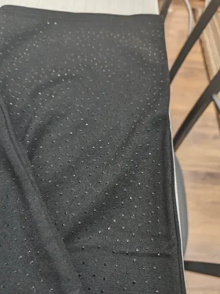 Eleganti leggings neri impreziositi da strass. - Tessuto morbido e confortevole. - Design scintillante con strass all-over. Leggings nero con la parte davanti ricoperta di strass e liscia la parte dietro Gamba svasata sul fondo Taglia L/XL Mai usato perché mi è piccolo