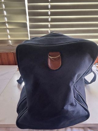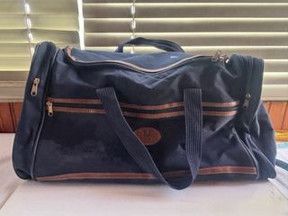 Borsone da viaggio blu scuro con dettagli marroni