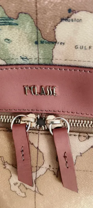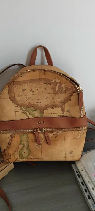 Zaino con stampa mappa degli Stati Uniti d'America. - Dettagli in pelle marrone. - Chiusura con zip dorata. - Logo Prima Classe sul davanti.