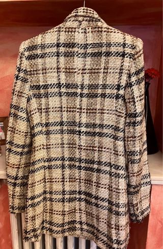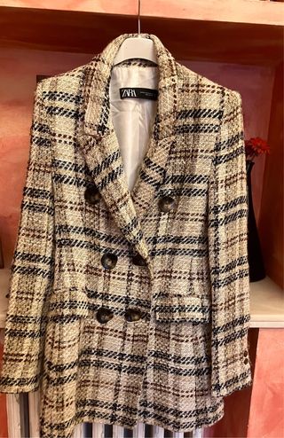 Elegante blazer Zara con estampado de tweed. - Diseño de cuadros - Cuello solapa - Cierre cruzado con botones - Bolsillos frontales