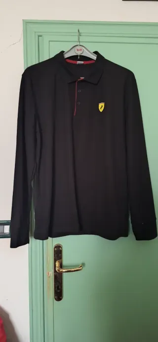 Polo da uomo a manica lunga. - Logo giallo sul petto. - Colletto con chiusura a bottoni. - Dettagli rossi sul colletto. Qw
