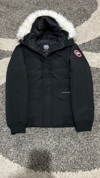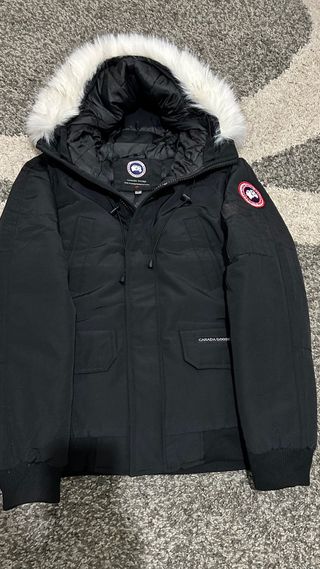 Giubbotto Canada Goose nuovo!! Mai indossato Tutto nero Taglia S Veste stretto Cerniera perfetta Tasche profonde Lunghezza 62 cm Larghezza 48 cm Spalle 42 cm Dalla spalla al polso 62 cm Prezzo poco trattabile! Spedizione veloce✅