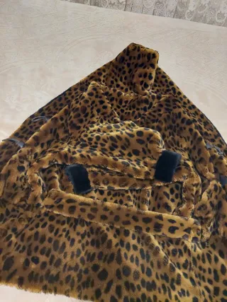 Cappotto vintage in pelliccia sintetica con stampa animalier. - Modello con cappuccio. - Chiusura con bottoni a levetta. - Fodera interna in tessuto nero.