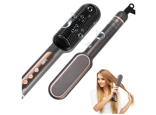 Piastra per capelli che combina le funzioni di una piastra e di un pettine, realizzata in ceramica. Il design è elegante con finiture in oro e grigio.Vendo Piastra , pettine per lisciare i capelli in ceramica , 5 impostazioni . Nuova con scatola e accessori . Temperatura costante e riscaldamento rapido. Variabile da 120 a 200 gradi centigradi. Display led per controllare la temperatura. Blocca l'umidità e fornisce un film protettivo per mantenere i capelli lisci a lungo. Non crea danni ai capelli . Li rende più sani e lucenti. Rivestita con materiali isolanti per evitare scottature duran - Materiale: Ceramica - Colore: Oro e Grigio