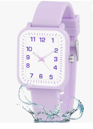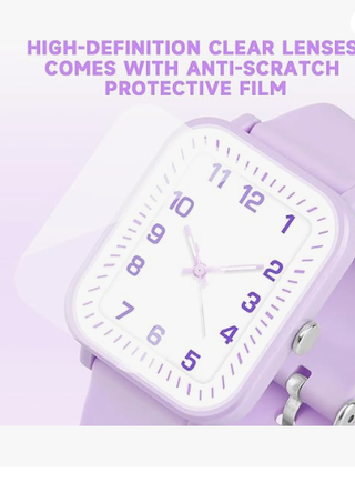 Orologio analogico con cinturino in silicone, ideale per bambini. Il quadrante è bianco con numeri viola.Vendo Orologio analogico per bambini , cinturino in silicone morbido , impermeabile 50m . Nuovo con scatola. Orologio analogico per bambini da 5 a 15 anni . Cinturino in silicone colore lilla , impermeabile fino a 50 metri . Lettura dell'ora semplice. Misura totale 23 cm , cinturino 1.8 cm , quadrante 3.6cm per 3.6cm . Polso da 13cm a 21 cm regolabile. Morbido offre massimo comfort, delicato sulla pelle , traspirante e atossico . A batteria cambiabile con lunghissim - Quadrante quadrato. - Lancette viola. - Resistente all'acqua.