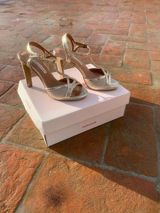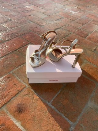 Eleganti sandali con tacco del brand MARIA MARE. - Colore oro e argento. - Design con cinturino alla caviglia. - Tacco alto e sottile.