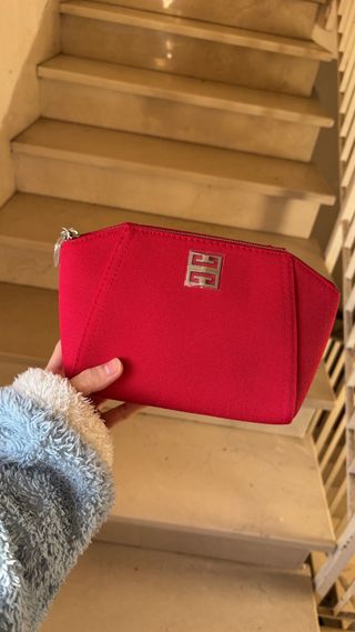 misura:27x16.5x13x8cm Elegante trousse Givenchy di colore rosso. - Logo Givenchy argentato. - Chiusura con zip.