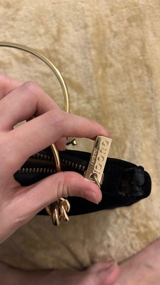 misura:26x16x5cm manico graffiato Elegante pochette Gucci Beauty, perfetta per portare con te l'essenziale. - Materiale in velluto nero. - Dettaglio ape dorata applicata sul fronte. - Manici rigidi dorati. - Zip di chiusura. - Targhetta logo dorata