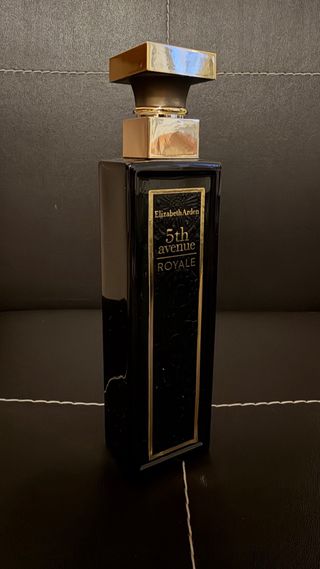 Profumo Elizabeth Arden 5th Avenue Royale, una fragranza rara e fuori produzione. - Design elegante con dettagli oro. - Bottiglia in vetro nero lucido.