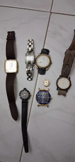 Set composto da due orologi. - Uno con cinturino in gomma nera e quadrante nero con numeri arancioni. - Uno con cinturino in pelle nera e cassa quadrata nera. Non vengono usati da parecchio, vanno sicuramente cambiate le batterie.