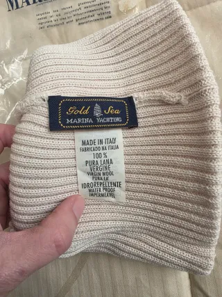 Cappello Gold Sea, come nuovo. In 100% pura lana vergine, Idrorepellente. In maglia a coste , Made in Italy. #unisex #waterproof #100lainevierge #100lanavergine #cappello100lana #cappelloidrorepellente #impermeável - Design unisex.