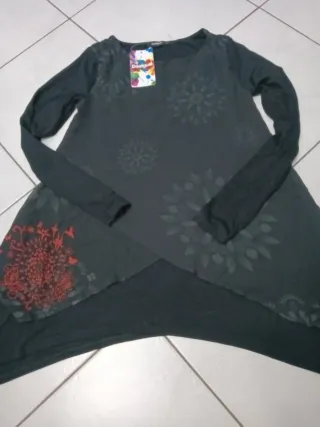 Maglia Desigual a manica lunga con un design unico. - Colore base nero. - Dettagli con stampa floreale in rosso. - Sovrapposizione di tessuti per un effetto a strati.