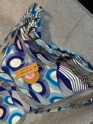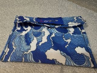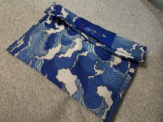 Porta tabacco fatto a mano con un design ispirato alle onde orientali. Un accessorio unico e artigianale. - Tessuto con motivo di onde blu e bianche. - Chiusura a patta. - Etichetta Handmade with Love applicata.