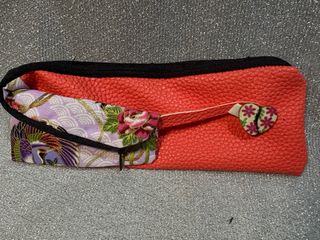 Mini pochette con un bellissimo motivo floreale in stile orientale. Realizzata a mano, è un pezzo unico. - Motivo floreale su sfondo rosso e rosa. - Dettagli dorati tra i fiori. - Chiusura con cerniera. - Etichetta Handmade with love.
