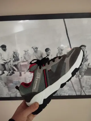 Scarpe da ginnastica uomo con un design moderno e accattivante. - Tomaia lucida e dettagli in camoscio. - Lacci neri. - Suola grigia. - taglia 43 - Zara