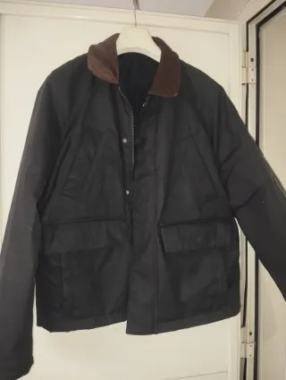 Giacca Zara da uomo. - Colletto in velluto a coste marrone. - Chiusura con bottoni e cerniera - Due tasche frontali con patta. - Leggera imbottitura interna - Impermeabile - Colore nero - Taglia S - Zara - Uomo - Mai utilizzato, nuovo