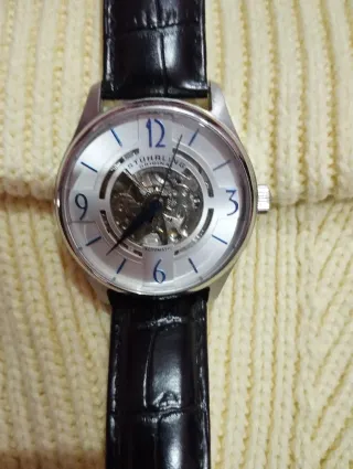 Elegante orologio da uomo Stührling Original con movimento a vista. - Cinturino in pelle nera. - Cassa in metallo color argento. - Quadrante scheletrato. - Automatico (movimento) - Nuovo, usato poco - Perfette condizioni, nessun difetto o altro - No box originale