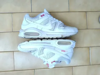 Vendo un paio di Nike Air Max Command Flex da donna, taglia US 5.5 (EU 38), 24 cm. Il colore principale è il bianco, con il logo e i dettagli in rosa acceso/fucsia che le rendono uniche e facili da abbinare. #nike #nikeairmax #airmax #scarpenike #nikedonna #sneakers #scarpe38