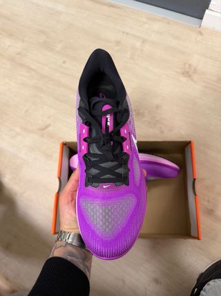 Scarpe Nike Air Zoom Spiridon in tonalità viola e rosa. - Tomaia in mesh traspirante. - Dettagli in pelle scamosciata. - Suola ammortizzata Zoom Air.