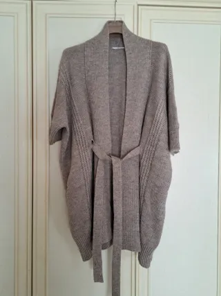 Elegante cardigan kimono da donna, perfetto per aggiungere un tocco di stile al tuo guardaroba. Lana alpaca acrilico - Tessuto morbido e confortevole. - Design aperto con cintura. - Maniche corte. - Dettagli lavorati sulle maniche.