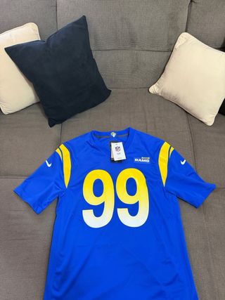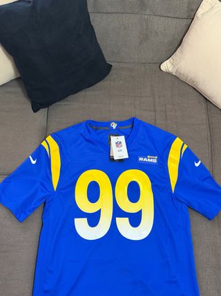Maglia da football americano NFL dei Los Angeles Rams, numero 99. - Colore blu con dettagli gialli. - Logo NFL e Rams visibile.