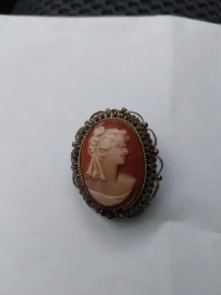 Bellissima spilla cammeo in stile vintage, con un profilo femminile finemente scolpito. - Cornice decorata. - Profilo di donna in rilievo.