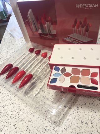 Palette di trucchi Deborah Milano con ombretti e rossetti. - Palette con specchio integrato. - Include pennelli applicatori.
