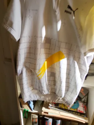 Maglietta sportiva Puma con un design moderno. - Colletto giallo. - Maniche corte. - Fantasia a griglia grigia. - Dettaglio grafico giallo. - Logo Puma nero.