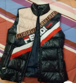Gilet Fendi con un design unico e riconoscibile. - Patchwork di materiali e colori. - Logo Fendi all-over. - Dettagli a contrasto.