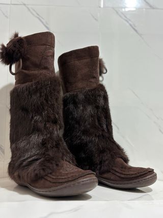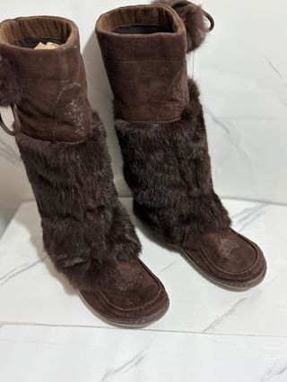 Stivali invernali con dettagli in pelliccia sintetica. - Materiale scamosciato. - Pelliccia sintetica morbida. - Dettagli decorativi sulla punta.