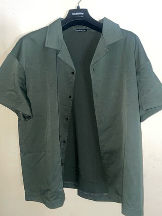 Camicia a maniche corte dal taglio moderno, perfetta per la stagione calda. Il colore verde la rende versatile e facile da abbinare. - Tessuto leggero e traspirante. - Chiusura con bottoni. - Collo a rever.