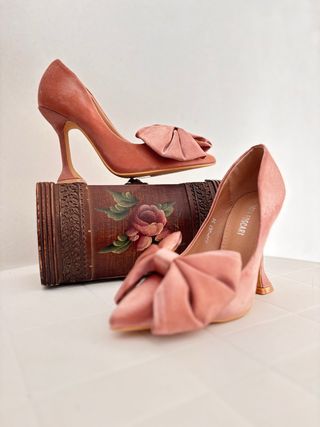 Eleganti décolleté con un grazioso fiocco. - Materiale effetto velluto. - Tacco a stiletto. - Punta affusolata.