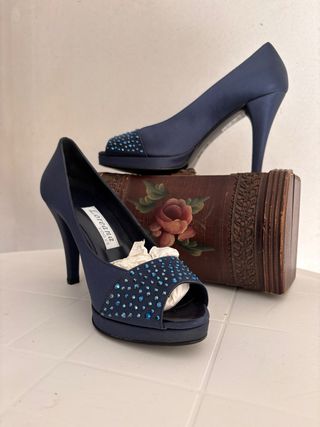 Scarpe Loriana eleganti blu con strass