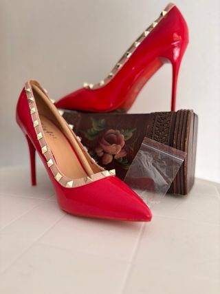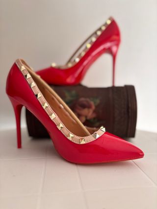 Eleganti décolleté rosse con tacco alto. - Tacco di 12 cm. - Dettagli con borchie dorate. - Finitura lucida.