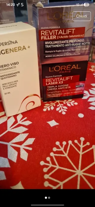 Set di due creme viso L'Oréal Paris. - L'Oréal Paris Revitalift Filler Trattamento Anti-Rughe Notte. - L'Oréal Paris Revitalift Laser X3 Crema Anti-Età Notte.