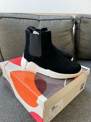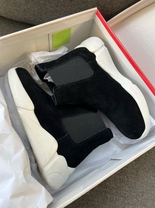 Eleganti stivaletti in camoscio nero. Perfetti per completare ogni outfit, numero 39 - Materiale: camoscio - Design a stivaletto - Suola bianca a contrasto
