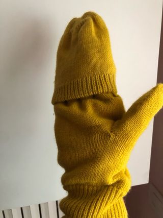 Guanti in maglia color giallo ocra, perfetti per tenere le mani al caldo. - Design senza dita per maggiore praticità. - Taglia unica adatta a tutti. - Logo Take-Two sul polsino.