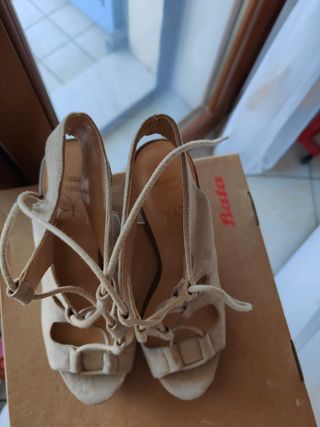 Utilizzata solo 1 volta vendo per num errato. Colore beige/nude. Tronchetto scamosciato con allacciatura intrecciata. Con comodo plateau leggerissimo. Con scatola originale