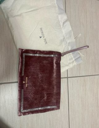 Elegante pochette Patrizia Pepe in velluto color rosa mai usata come nuova - Dettagli con bordatura argentata. - Logo Patrizia Pepe impresso. - Include dustbag originale.