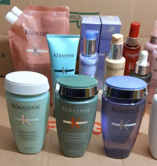 Lotto misto di prodotti Kérastase. Tutto Nuovo, nai usato. Shampoo ancora con il loro sigillo interno, beccucci belli puliti, piccoli segni su alcuni flaconi, piccoli graffi invisibili sulle ricariche. Tappo Shampoo verde presenta piccola crepatura. Un Genesis Defense Thermique risulta senza il tappino. Contenuto di tutti i prodotti OK. - Diverse confezioni e flaconi. - Varie tonalità di colore.