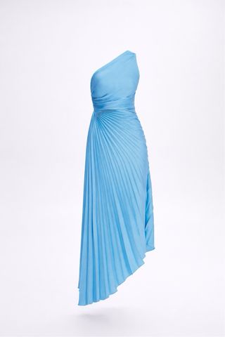 Abito monospalla azzurro plissettato