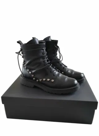 Anfibi da donna con un design audace e dettagli di borchie. - Materiale: Pelle - Colore: Nero - Chiusura: Lacci - Dettagli: Borchie metalliche decorative