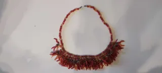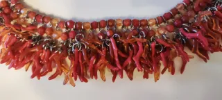 Collana girocollo realizzata con perline sfaccettate. Presenta un design a frange nella parte inferiore. In colore corallo - Perline sfaccettate. - Dettagli a frange. - Chiusura a moschettone.