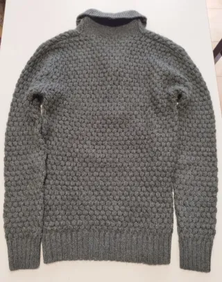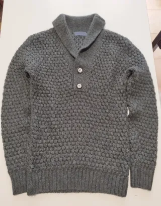 Maglione pullover Hamaki-Ho in alpaca, lana e acrilico, con collo a scialle con 2 bottoni. Colore verde scuro. Taglia S. Nuovo senza cartellino . knitwear maglia knit