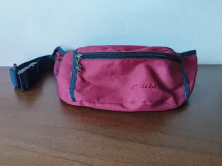 Marsupio vintage Invicta, con due scomparti con zip, taschine portacarte e anelli. Colore borgogna con dettagli e cintura blu. Ottimo condizioni. Unisex. Misure: Altezza 14 cm Larghezza 49 cm Profondità 10 cm